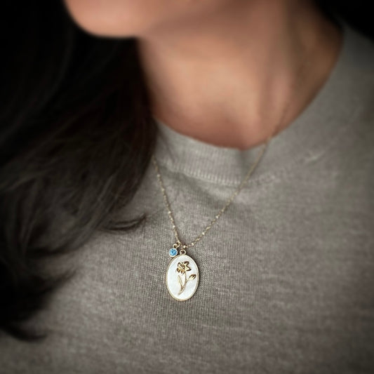 Custom Birth Month Flower Necklace with Infused Breast Milk or Ashes into theBirth Month Stone | Personalized New Mom Necklace | Memorial Jewelry