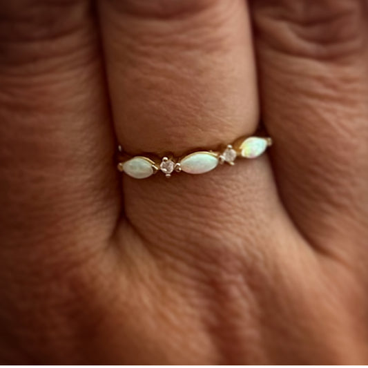Gold-Plated Opal Ring with Ashes or Breast Milk Infused | Cubic Zirconia Accents | Unique Memorial Jewelry